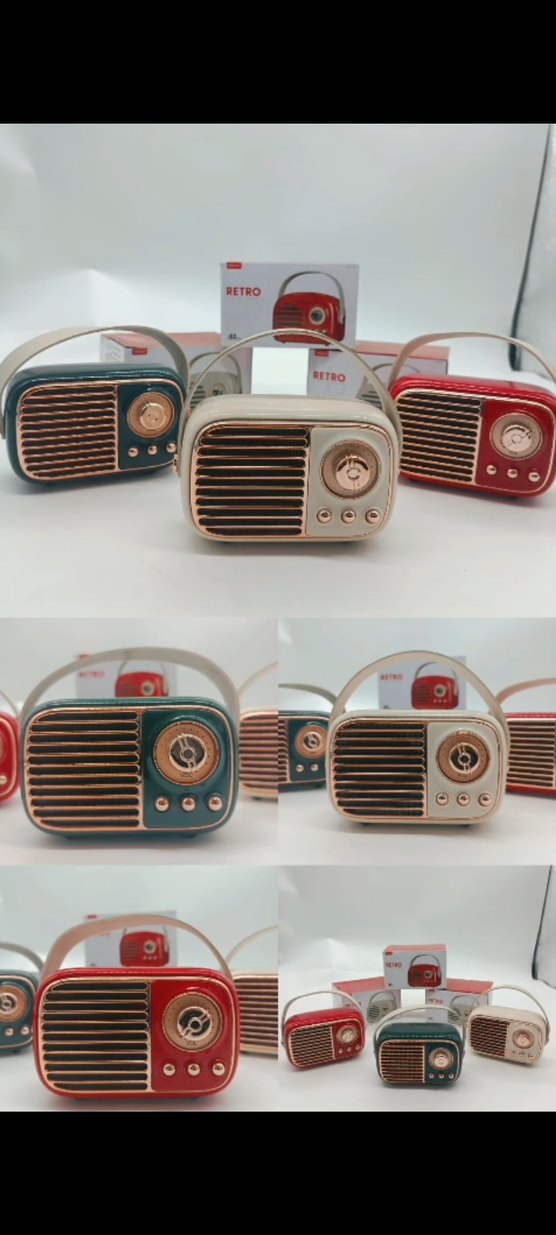 Renkli retro tasarıma sahip, taşıma saplı ve klasik düğmeli müzik sistemi. Nostaljik görünümü modern işlevsellikle birleştirir.