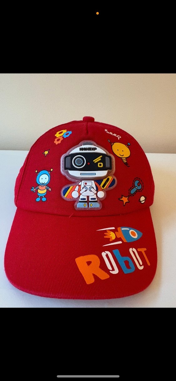 Renkli baskılı robot desenli, yumuşak ve rahat polar kumaştan yapılmış, cırt cırtlı erkek çocuk şapkası.
