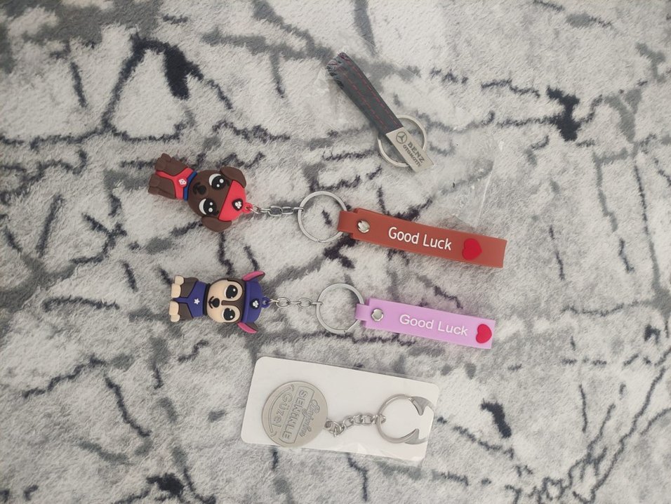 'Good Luck' yazılı elastik bantlı, renkli rock punk tarzında anahtarlıklar. Sevimli karakter detaylarıyla anahtarlarınıza sıcak bir hava katıyor. 4 adet fiyatı hiçbiri kullanılmadı.