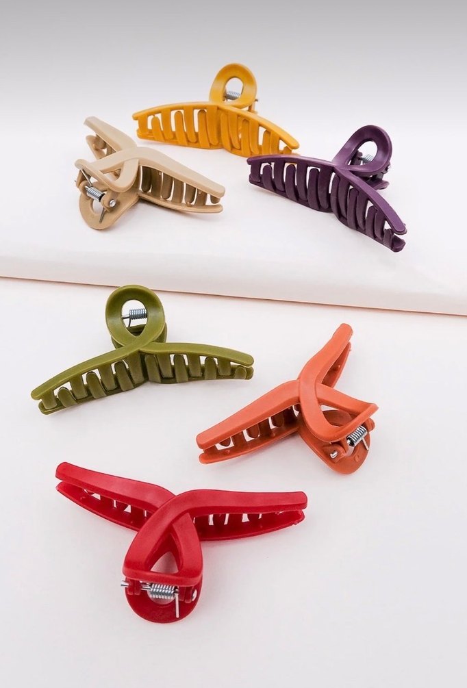 Renkli plastikten yapılmış, mandallı saç tokaları seti. Minimalist tarzda, saçları sağlam tutar ve canlı renklere sahiptir.