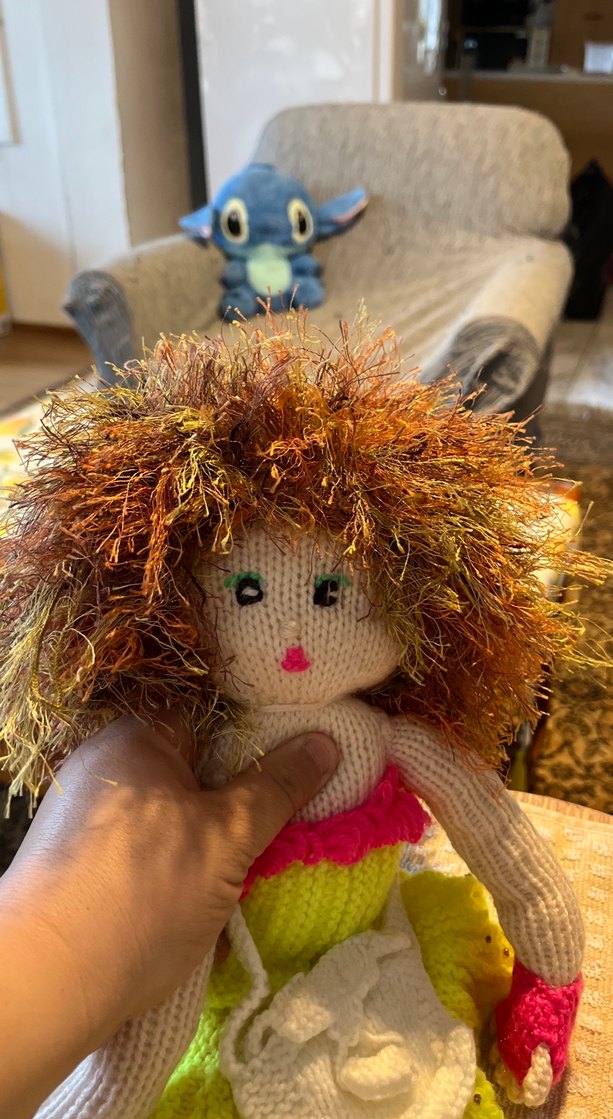 Renkli Saçlı Örgü Bebek 50 santimdir