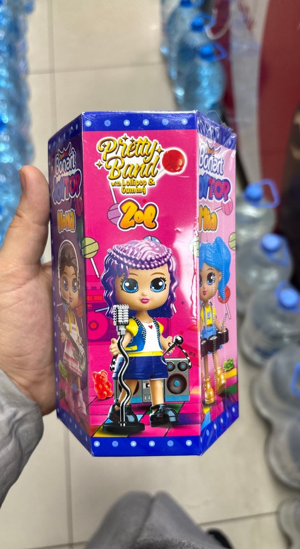 Pretty Band Zoe bebek, renkli mor saçları ve şık kıyafeti ile hayal gücünü destekler.
