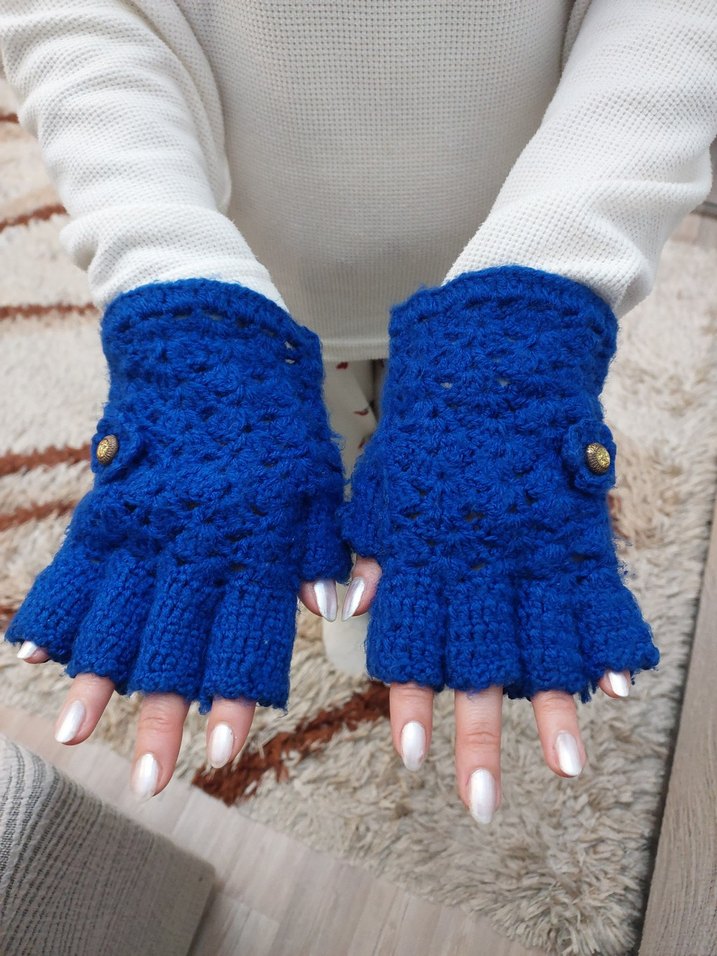 Renkli saks mavi el örgüsü bohem tarzda ressam şapkası, boyunluk ve eldiven.Rahat ve şık bir görünüm sunar. Sıcak tutan ve trend bir parçadır.Renk buradakinden daha canlıdır.Marka temsilidir.