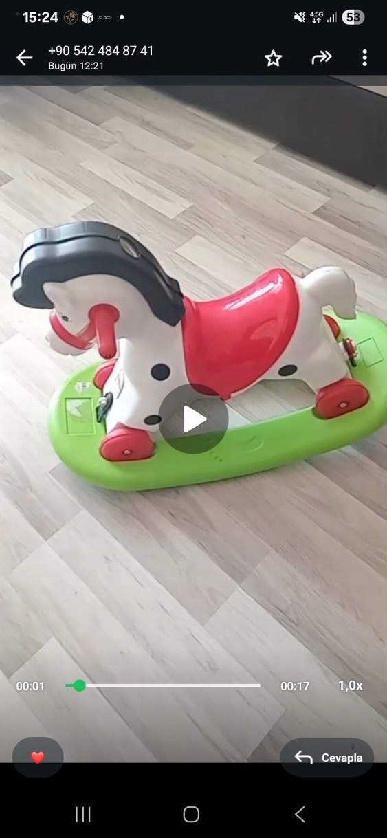 Yeşil tabanlı, kırmızı, beyaz ve siyah detaylı renkli sallanan at oyuncağı. Çocukların sallanarak oynayabileceği pürüzsüz yüzeye sahip.