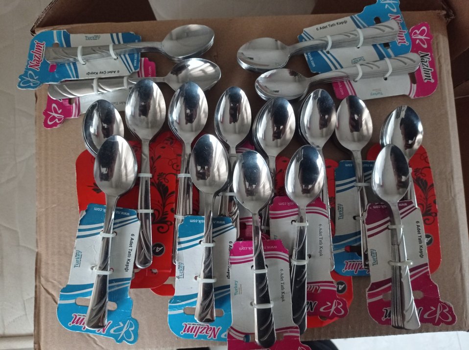 Çelik kaşıklar, renkli saplarıyla mutfak takımınıza canlılık katar. tatlı kaşıkları sıfır ve çok uygun 6 li set 140 TL yerine sadece 82 tl