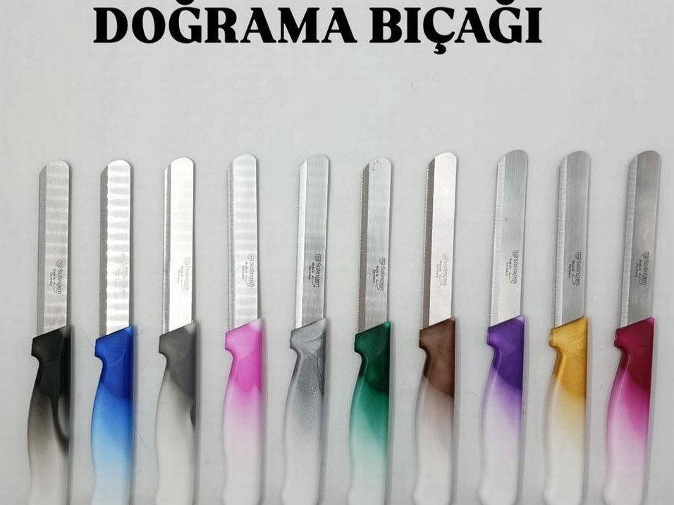 Renkli saplı ve paslanmaz çelik bıçaklardan oluşan kesme bıçakları seti, üzerinde 'GRAMA BICAO' yazısı bulunur.