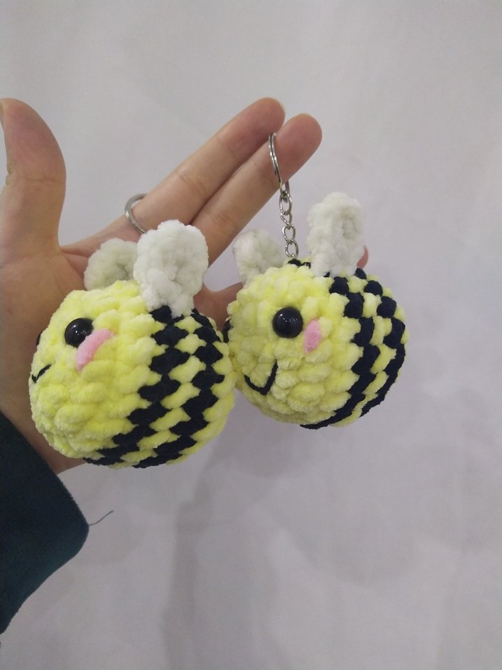 Yumuşak dokulu, siyah çizgili ve küçük kanatlı renkli sarı arı peluş anahtarlıklar. adet fiyatıdır
