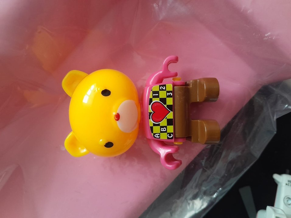Canlı renklerde sarı ayıcık oyuncak, üzerinde desenli detaylar bulunur. Hayal gücünü destekler.