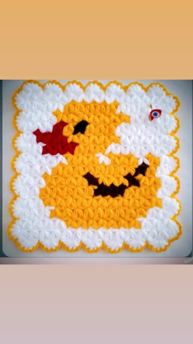 Renkli sarı banyo süngeri, dokulu tasarım ve süslü kenar detayına sahip. Yumuşak ve banyo için uygun.