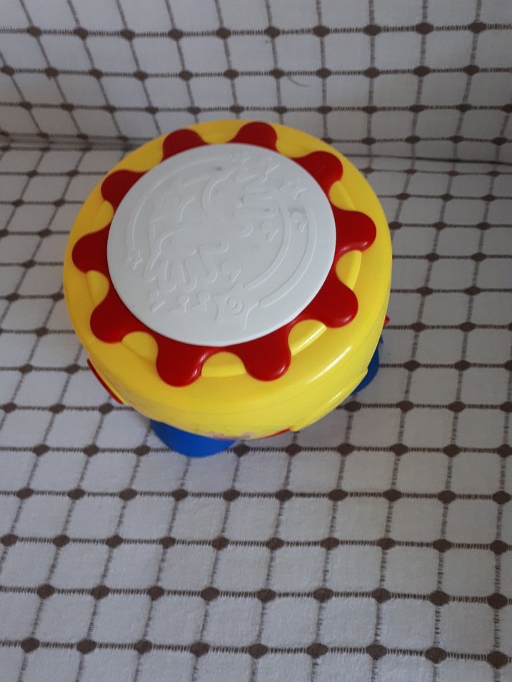 Kırmızı ve beyaz detaylı, canlı renklerde sarı müzikli oyuncak, ses çıkararak eğlence sağlar. temas sıkıntısı var ama tamir edilebilir