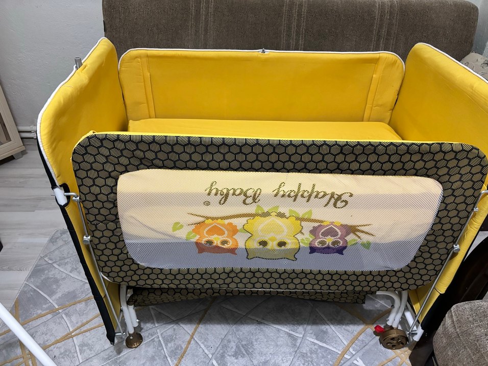 Yumuşak dolgulu iç yüzeyi ve baykuş desenli file yanlarıyla renkli sarı oyun parkı yatağı, bebeğiniz için konfor ve güvenlik sağlar. Sallanması çok iyi değil,Uşaktan elden alınabilir.100*80 ölçüleri