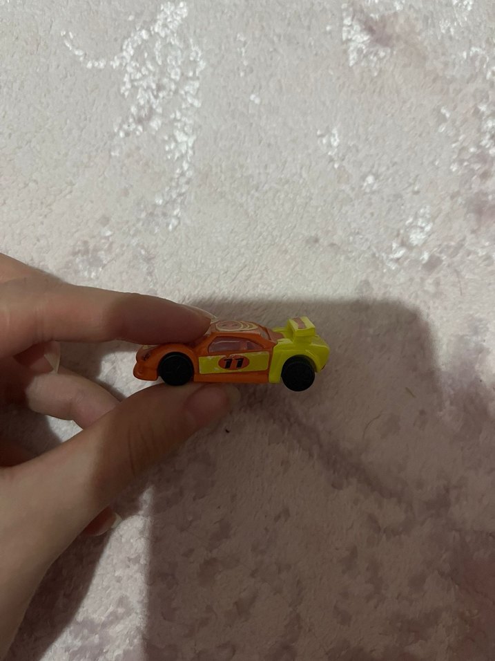 Siyah tekerlekleri olan renkli sarı oyuncak araba, oyun ve koleksiyon için uygun.
