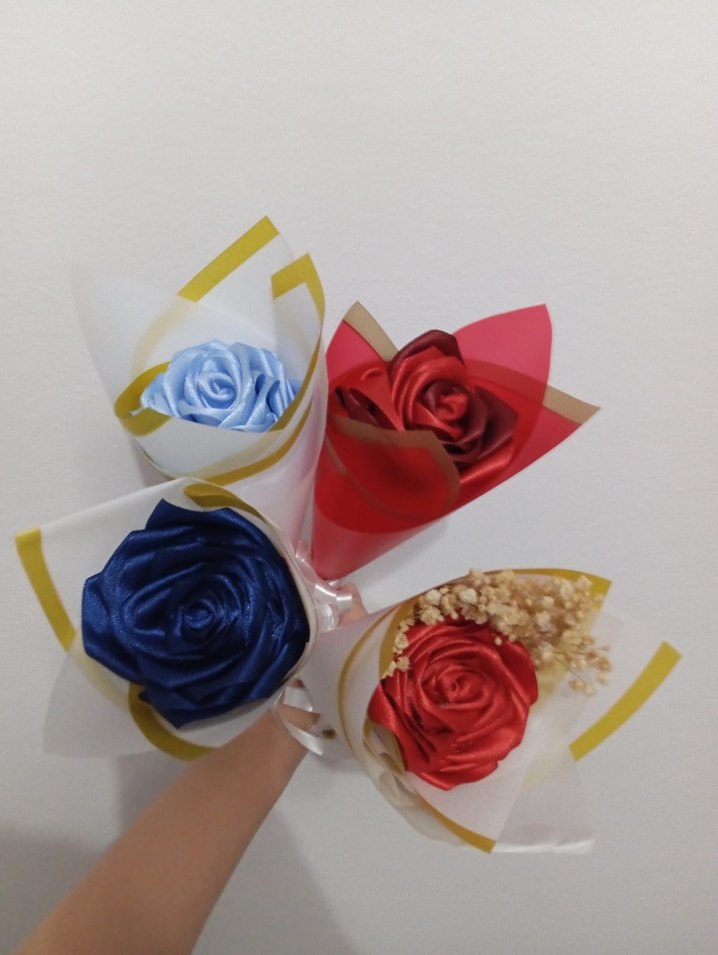 Renkli Saten Gül Buketi Seti