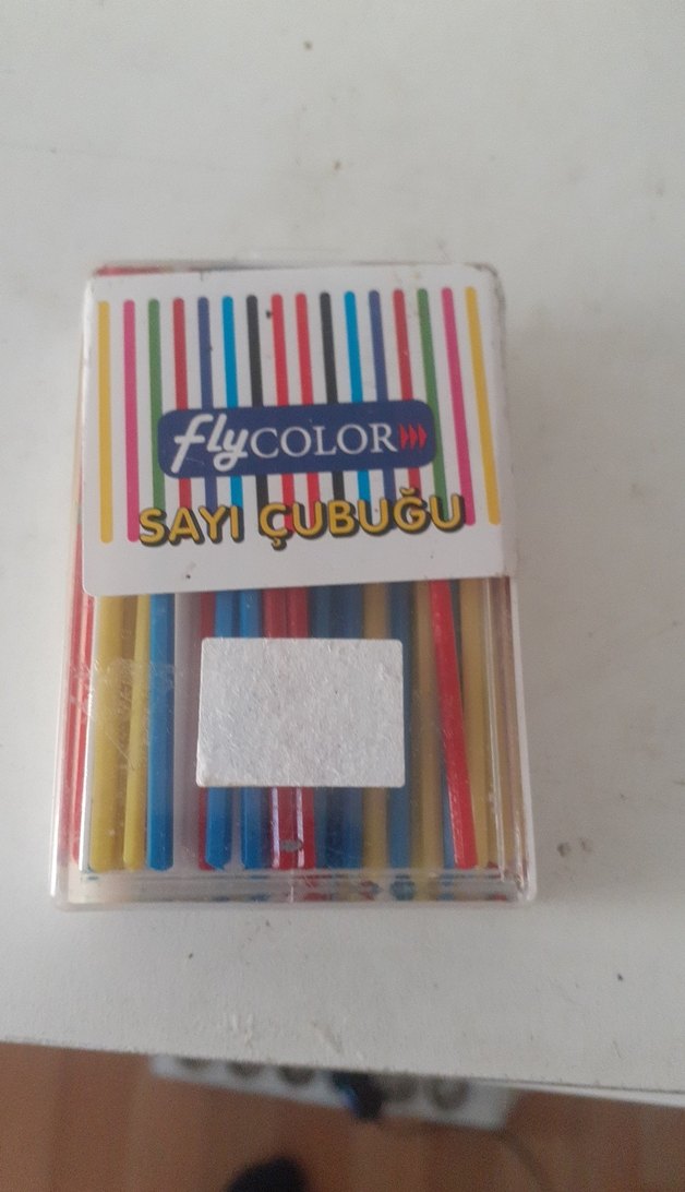 Renkli sayma çubukları içeren set, çeşitli canlı renklerde ve şeffaf kutuda FlyColor markalıdır.