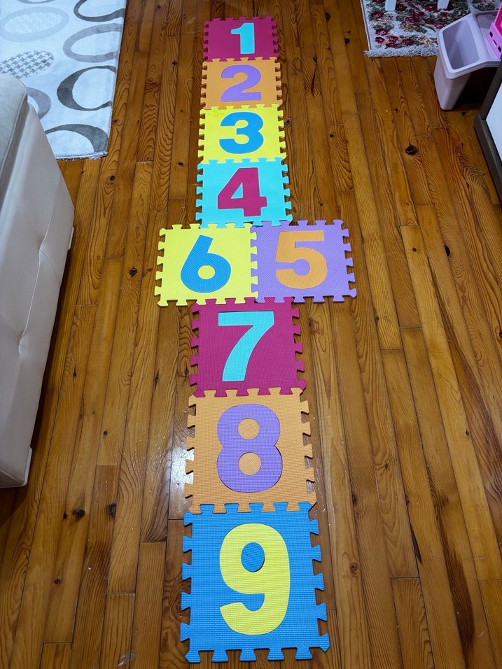 Renkli çocuk yapbozu matı, 1'den 9'a kadar sayılar içerir. Yumuşak ve birbirine geçen köpük parçalar eğlenceli ve eğitici bir oyun alanı sağlar. Kusur olarak üzerinde çizilmiş yerler var onlar da fotoğrafta belirtildi, fiyatı ona göre tuttum.