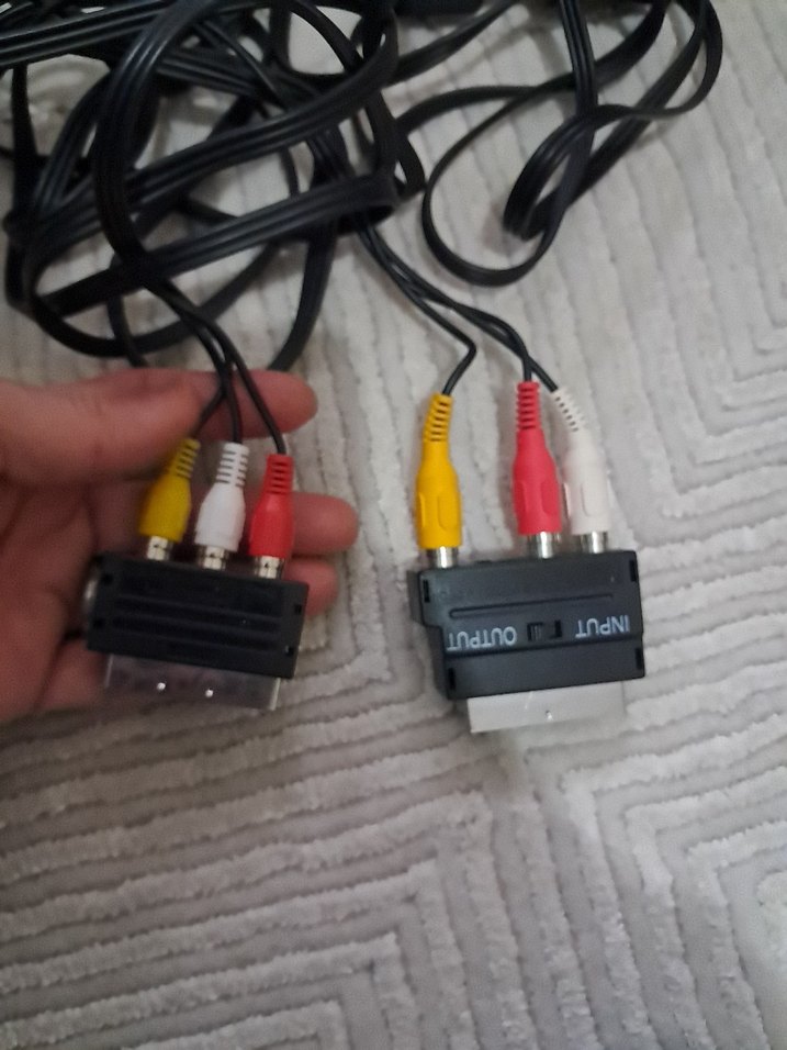 Renkli SCART kablosu, kompozit video ve ses giriş-çıkış bağlantıları ile birlikte.