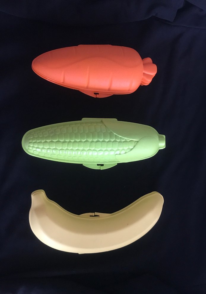 Havuç, mısır ve muz şeklinde beslen me saklama kutuları