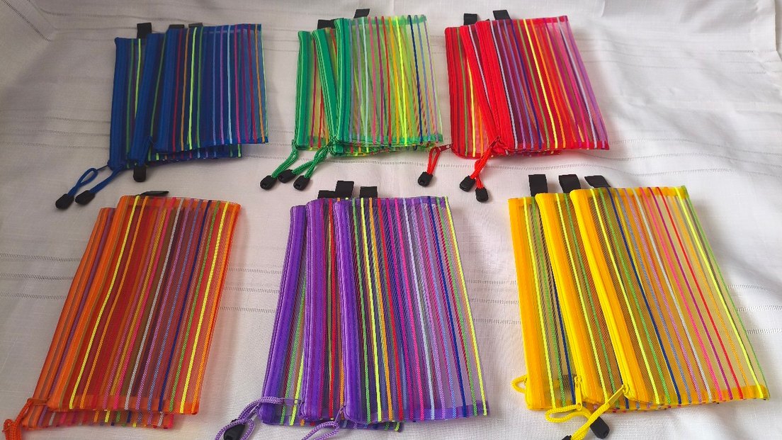 Çok renkli, şeffaf ve fermuarlı kalem kutuları. Okul malzemelerini düzenlemek için uygundur. ✏️ makyaj çantası olarakta kullanılabilir.