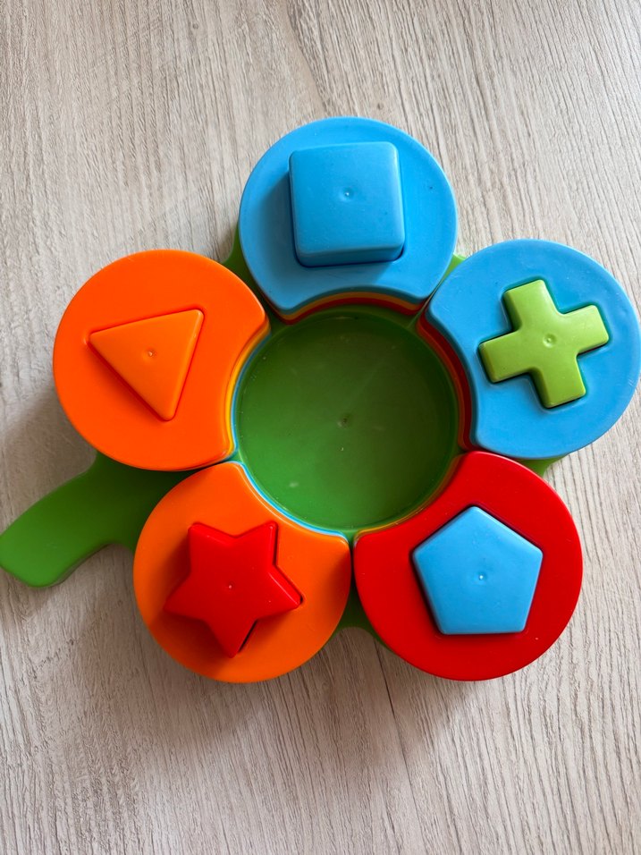 Beş farklı şekil ile eşleşme yapmasını sağlayan eğitici oyuncak, çocukların şekil ve renkleri öğrenmesine yardımcı olur. Yıldız, üçgen, kare, beşgen ve artı şekilleri içerir.