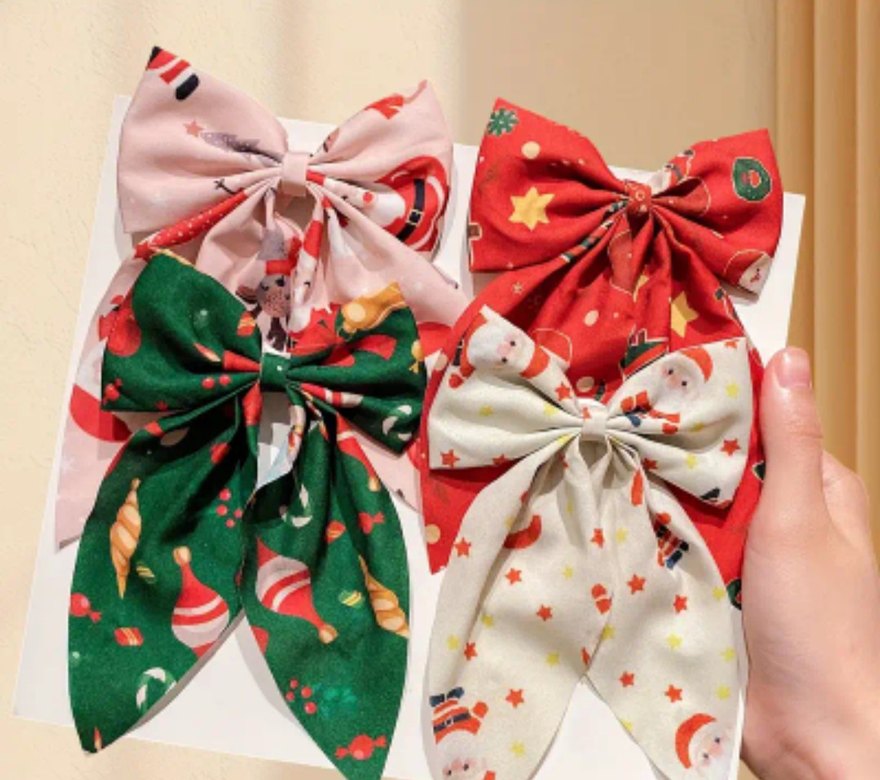Renkli sentetik kumaştan yapılmış, desenli kadın fiyonk toka. Saçınıza sıcak ve pop kültür havası
