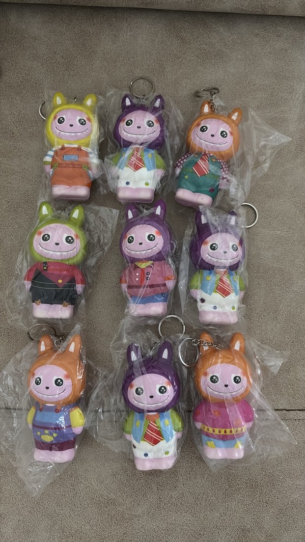 Farklı kıyafet ve hayvan kulaklarıyla sevimli renkli anahtarlık oyuncaklar. Her biri ayrı ayrı poşet içinde. Adet fiyatıdır