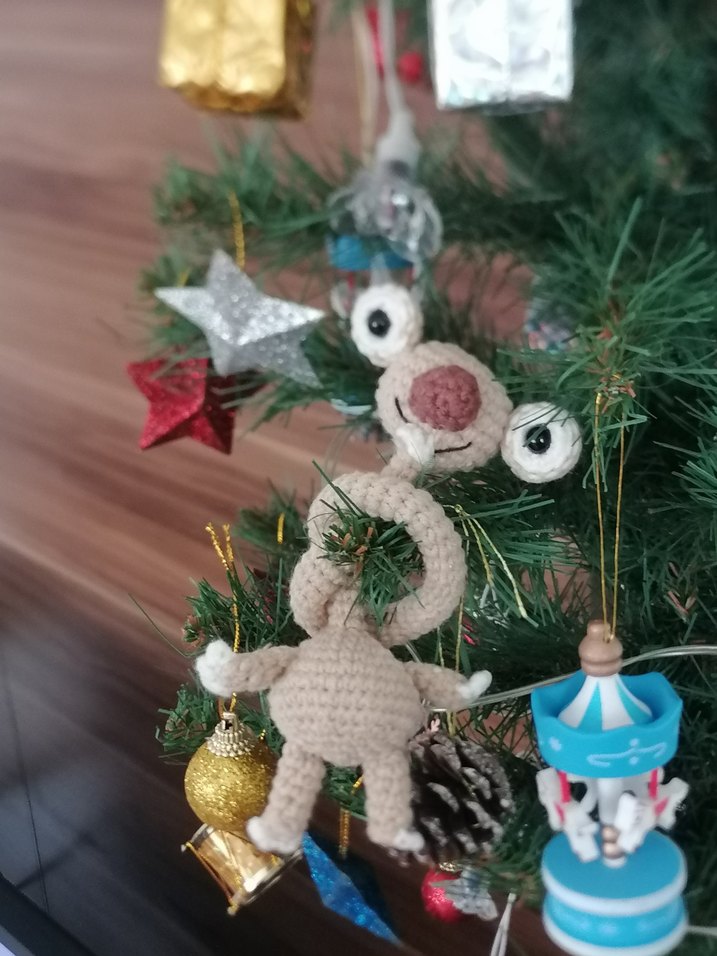 Renkli, büyük gözlü ve deve tonlarında el örgüsü sevimli peluş oyuncak. B6z devri sid