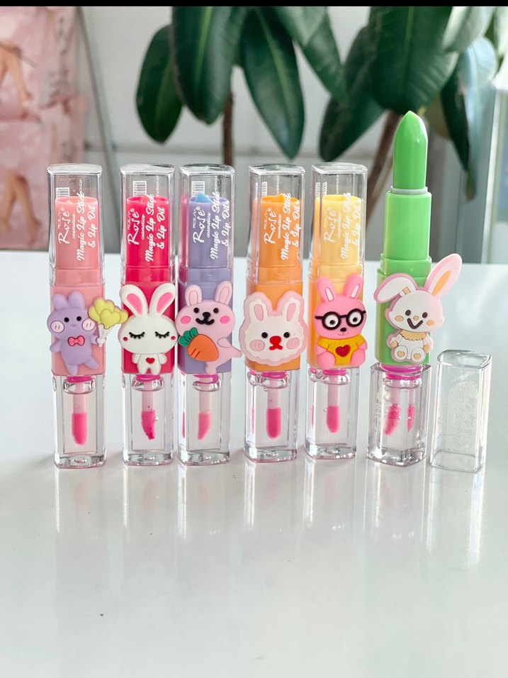 Rose (tavşan figürlü) çift taraflı shirly ruj & dudak parlatıcı ... devamı Renkli ve sevimli tavşan figürlü lip glosslar ile yeşil ruju içeren eğlenceli bir makyaj seti.