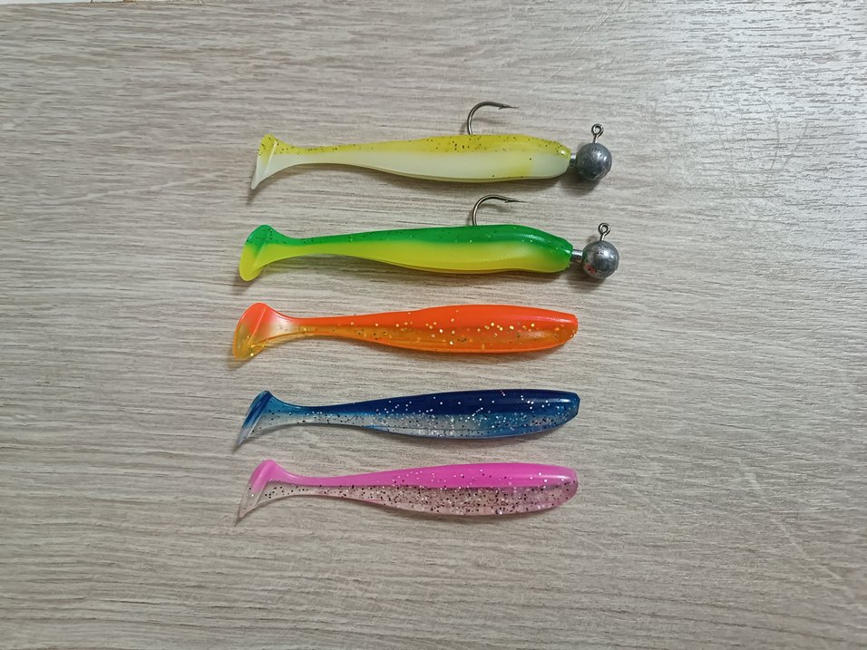 5 adet 9 cm renkli silikon balıkçılık yemleri, her biri ağırlıklı kanca ile. Canlı renkler ve sim detayları içerir. 2 adet 8 Gr jighead ile beraber fiyattır.