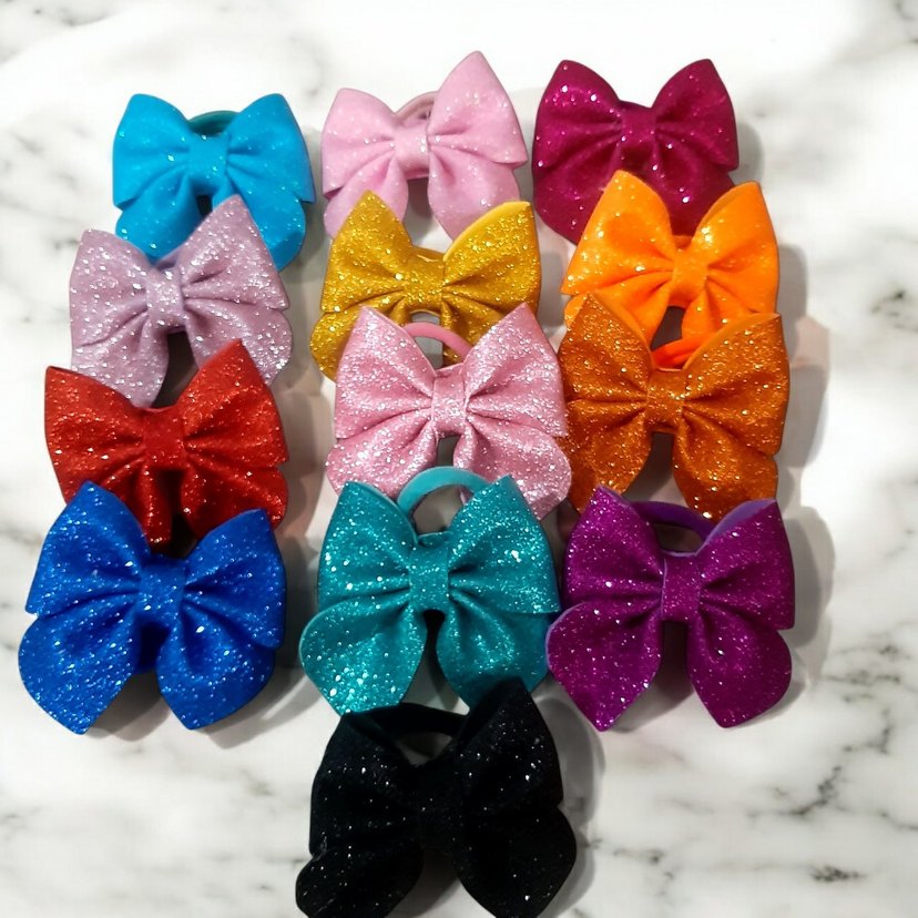 Simli fiyonk detaylı, renkli çocuk saç tokaları seti. Canlı renkleriyle pop kültür stilini yansıtır.