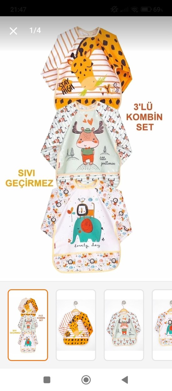 renkli baskılı bebek önlük. Her önlük sıvı geçirmez özelliktedir, beslenme sırasında temizlik sağlar. Eğlenceli desenler içerir. tek ürün fiyatıdır