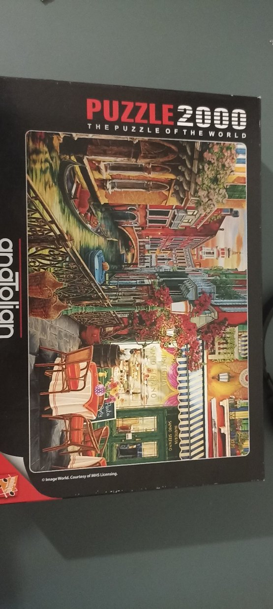 2000 parçadan oluşan bu puzzle, canlı renkler ve detaylı sokak manzarası ile zengin bir görsel sunar.