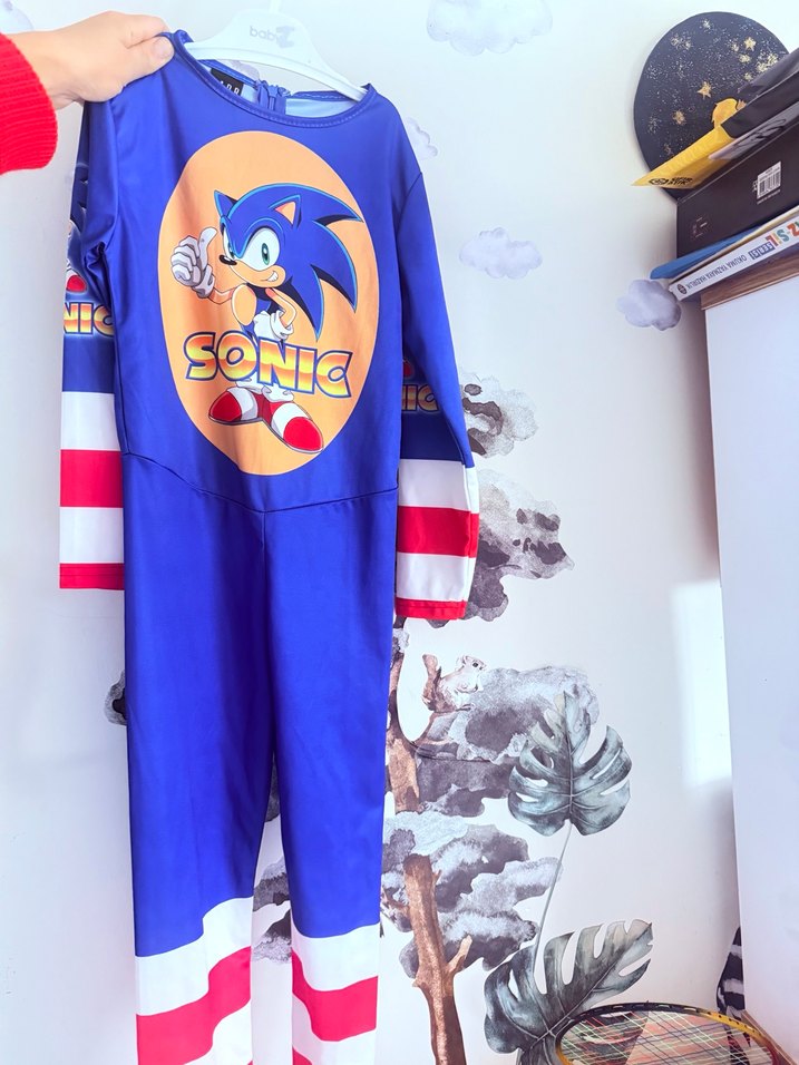 Renkli, fitted kesim çocuk tulumu, uzun kollu ve boğazlıdır. Önünde canlı Sonic baskısı ve fermuar detayı vardır. 4,5 yaa uyumludur. Uzunluğu 95 cm