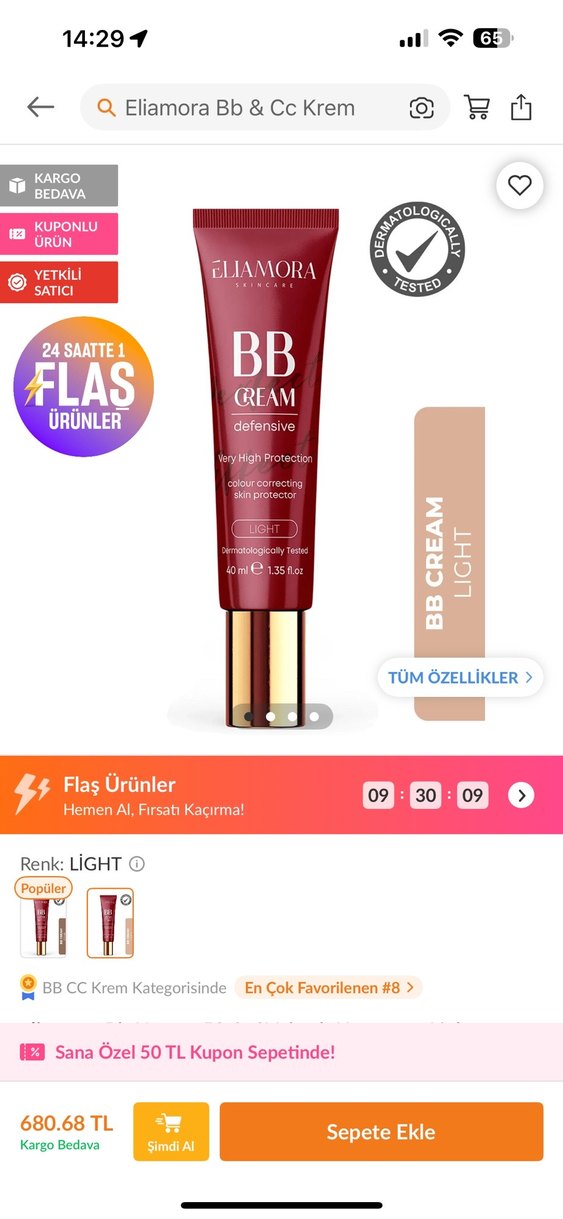 Renkli SPF 50+ Koruyucu BB Krem light