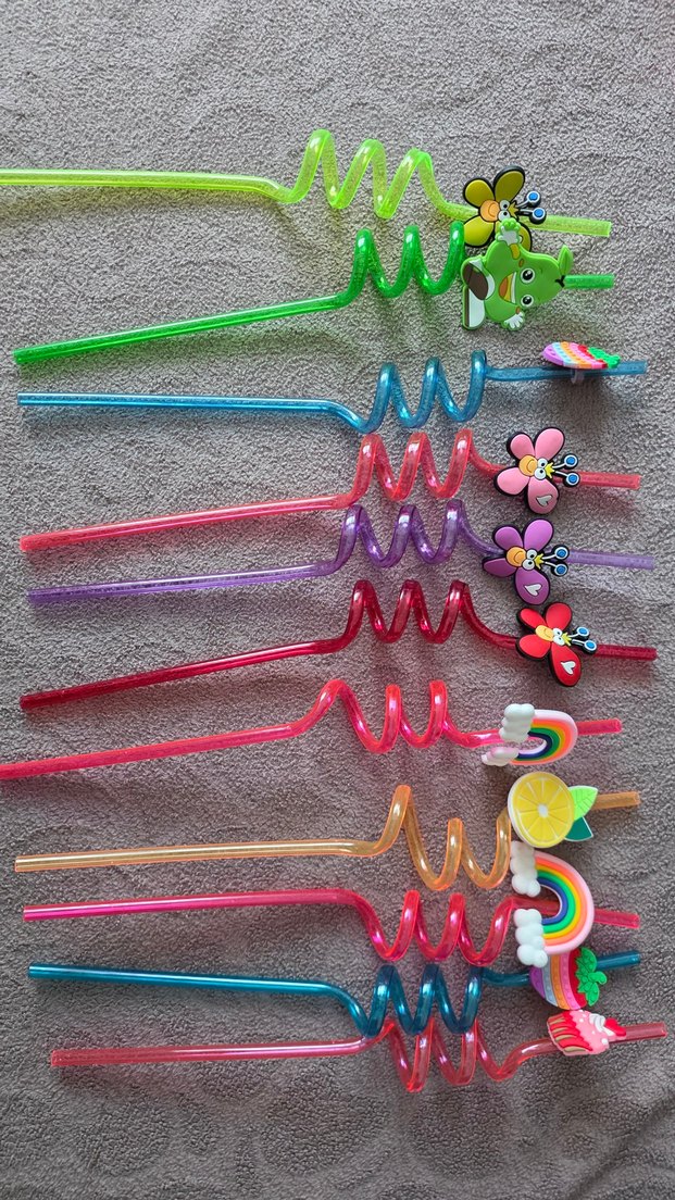 Çiçek, hayvan, gökkuşağı ve meyve süslemeli renkli spiral parti pipetleri. Partilere eğlence katan aksesuarlar. ( yeni etıketlı)