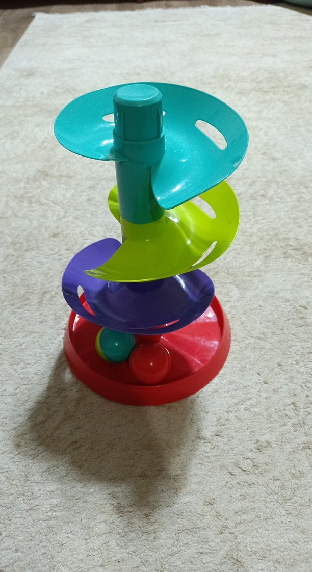 Çok renkli spiral oyuncak, topların yuvarlanması için çok katmanlı bir yola sahip, el-göz koordinasyonu ve motor becerileri geliştirir.