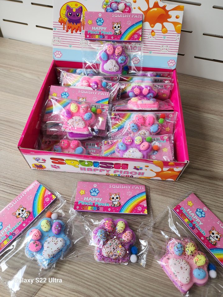 Parlak sim detaylı, renkli squishy patili oyuncaklar, tek tek paketlenmiş. Yumuşak ve eğlenceli dokunsal oyuncaklardır. Sukuşi moj moj pati