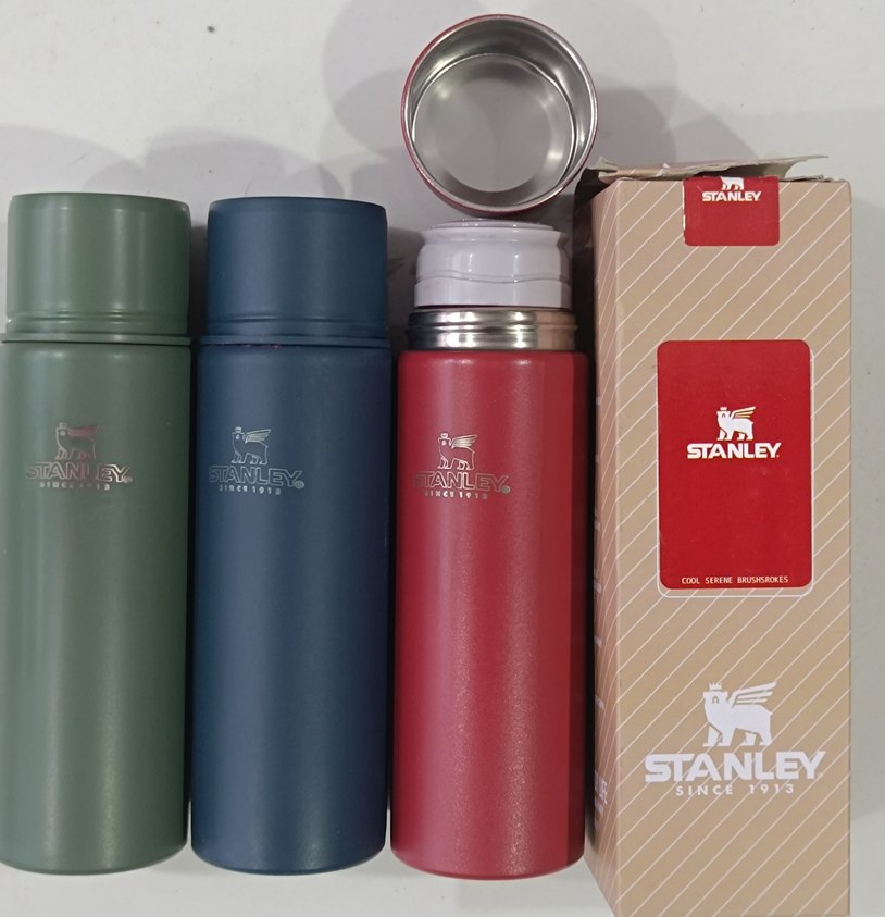 Renkli Stanley termos şişe, içecekleri saatlerce sıcak veya soğuk tutar. Paslanmaz çelik iç yüzey ve güvenli vidalı kapak içerir. Çocuklar için uygun.