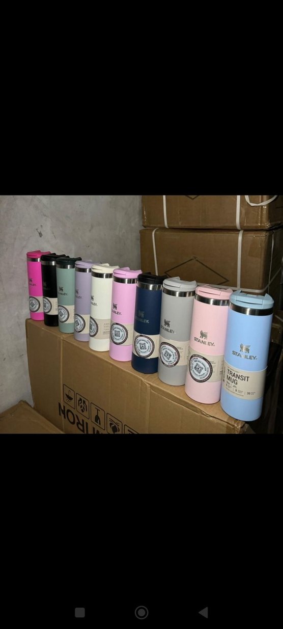 Canlı pembe ve diğer renk seçenekleriyle Stanley Transit termos bardaklar, içecekleri sıcak veya soğuk tutan kapaklı tasarıma sahiptir.