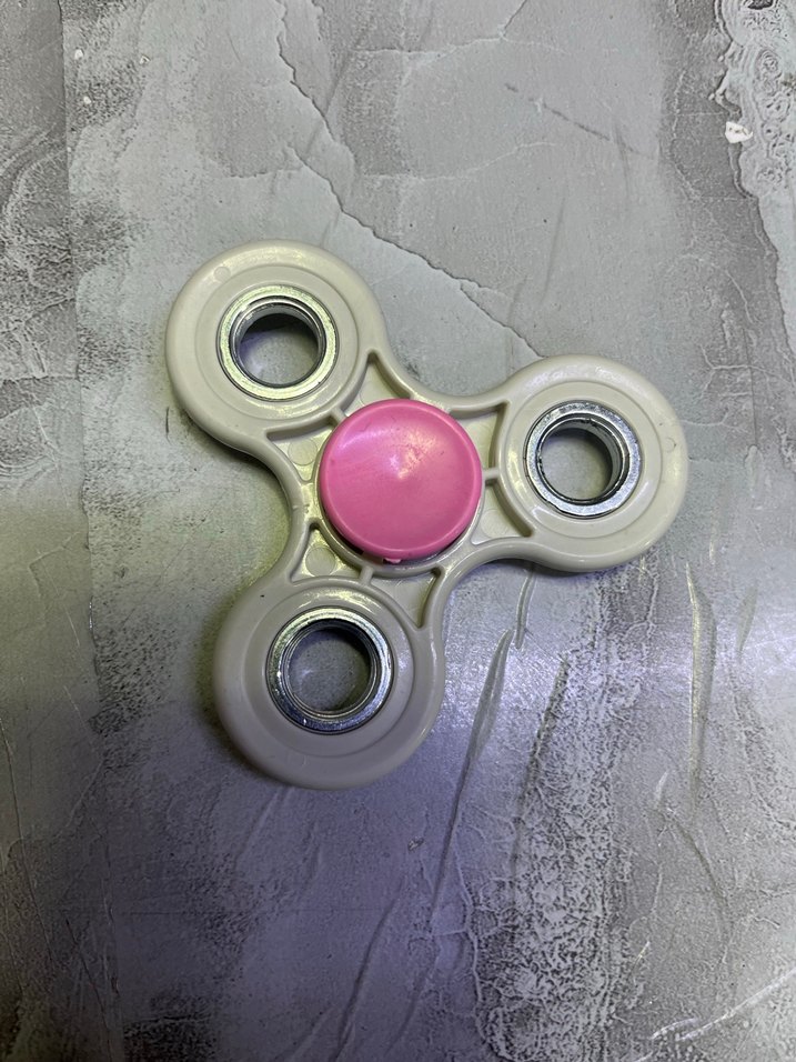 Beyaz renkli ve açık tonlu, ortası pembe olan stres çarkı, rahatlama ve odaklanma için uygundur.