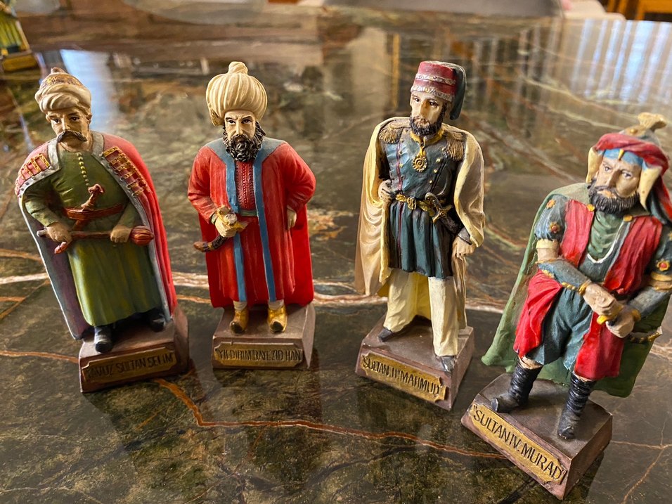 Canlı kamel renginde, geleneksel kıyafet detaylı 4 adet sultan figürleri seti