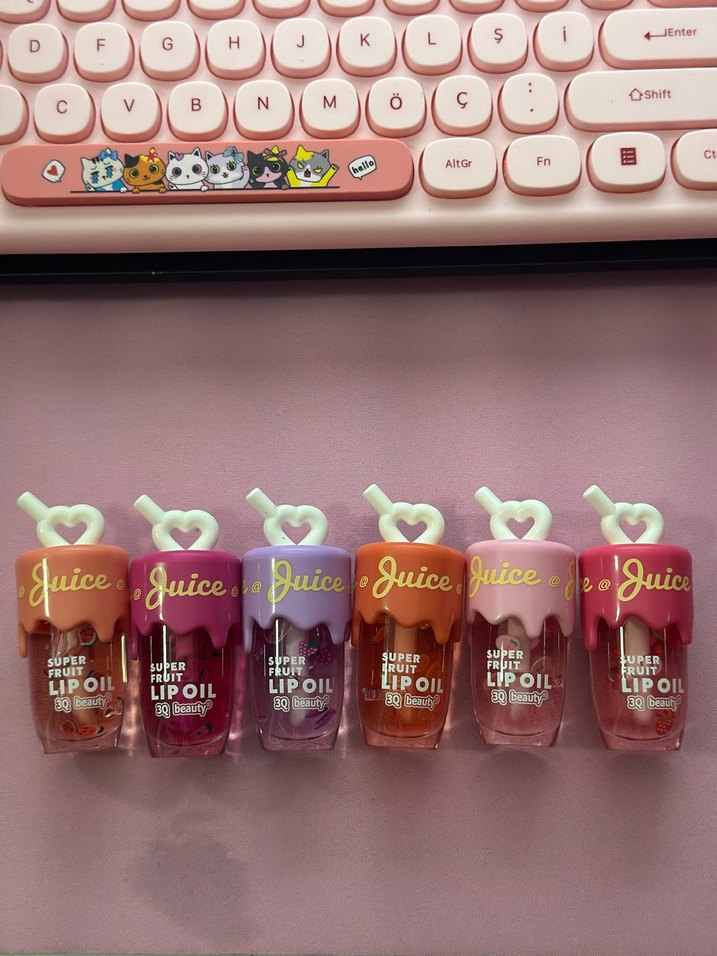 Altı renkli, kalp şeklinde aplikatör saplı Super Fruit Lip Oil seti, parlak ve nemlendirici etki sunar.