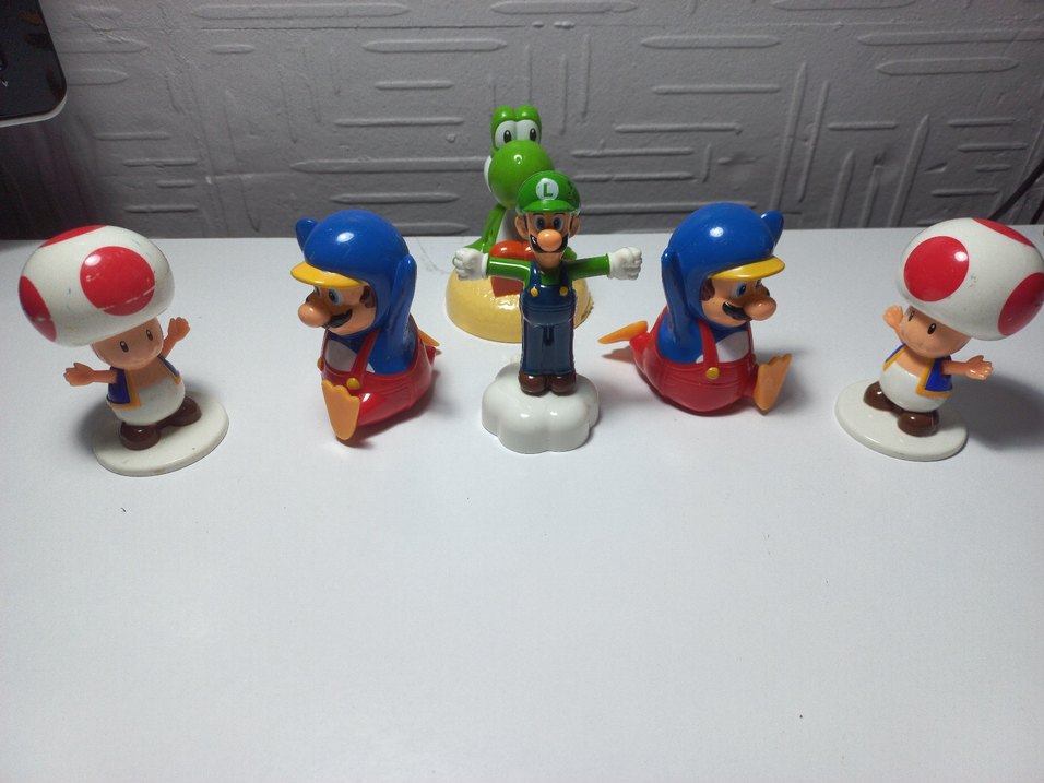Mario, Luigi, Yoshi ve Toad renkli figürler. Canlı renkleri ve detaylarıyla koleksiyon için uygundur.