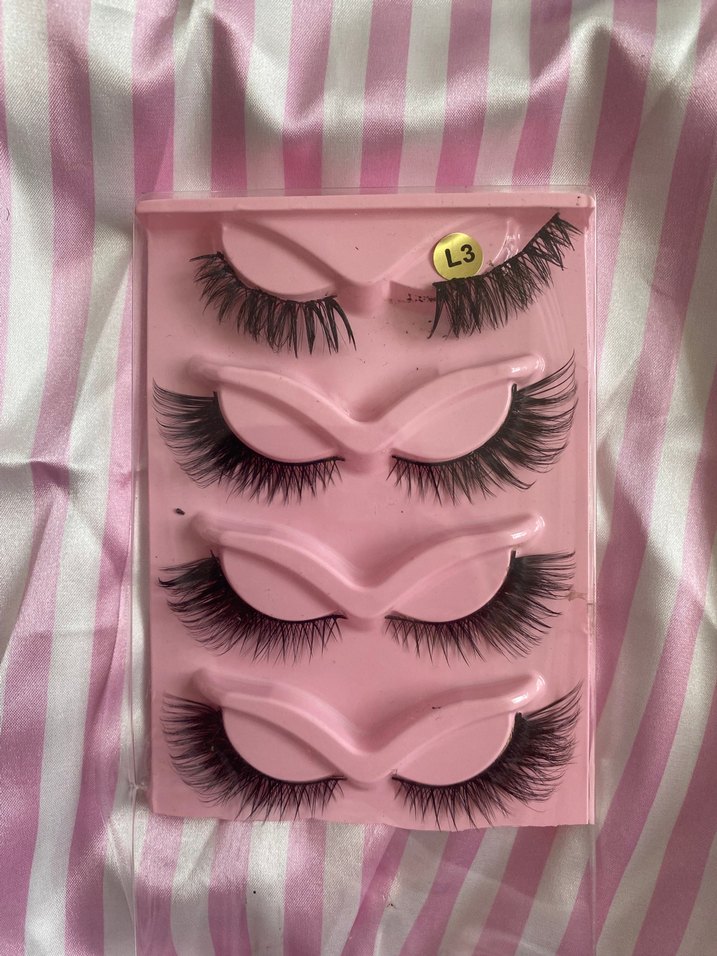 Farklı tarzlarda renkli takma kirpik seti, pembe kutuda. Göz görünümünü güçlendirmek için uygun.