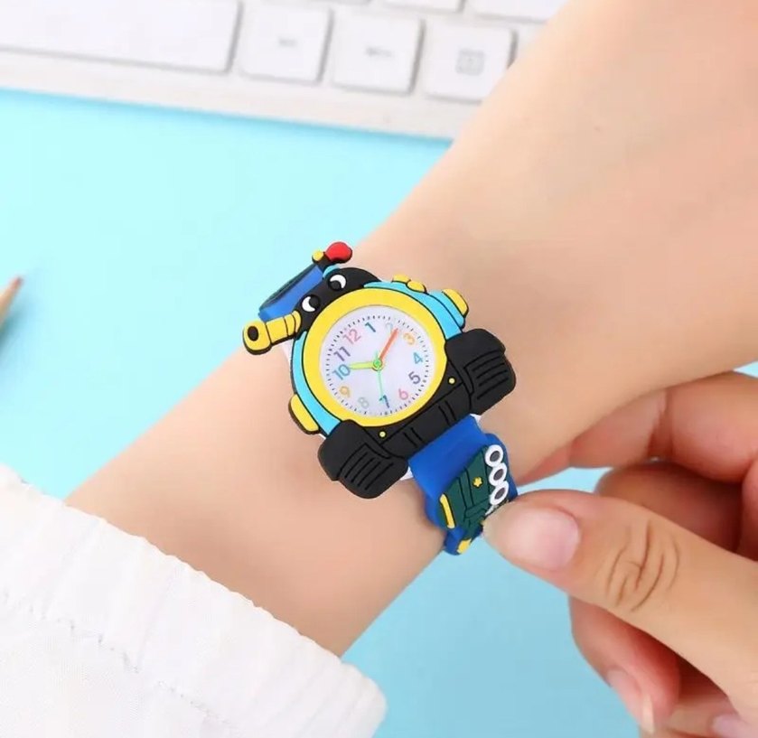 Renkli Tank Figürlü Çocuk Kol Saati Silikon Kordon