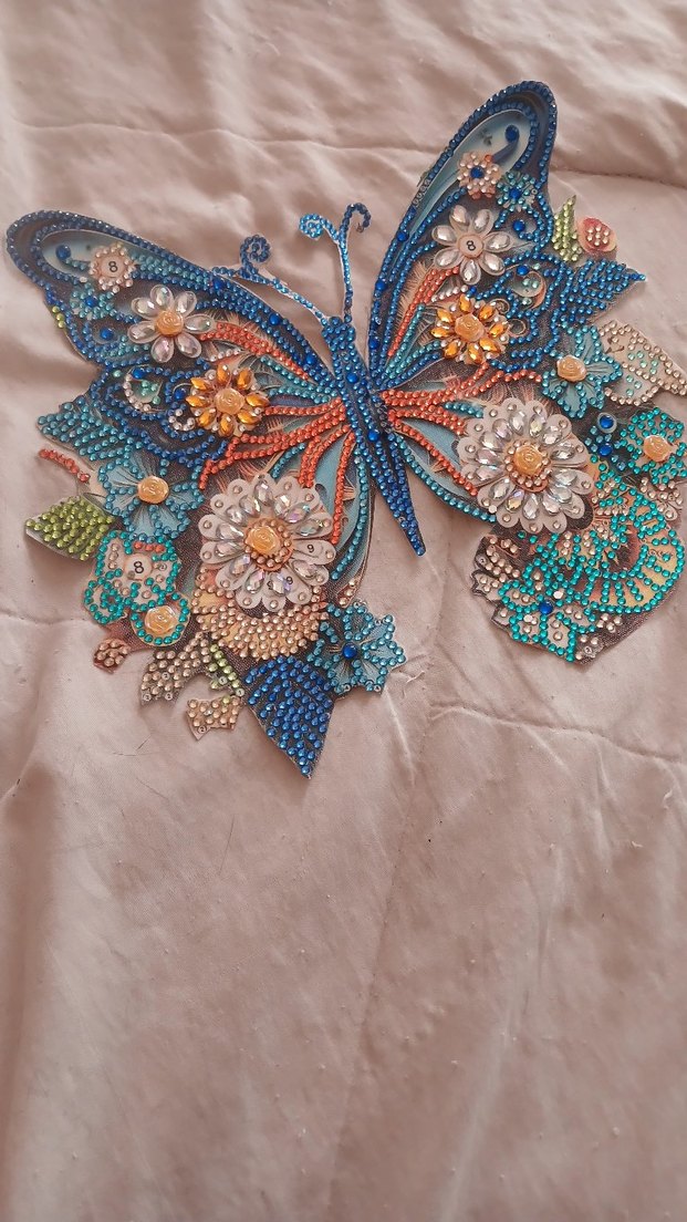 İşlemeli ve boncuk detaylı, renkli kelebek göze batmayan 1 2 taş eksik