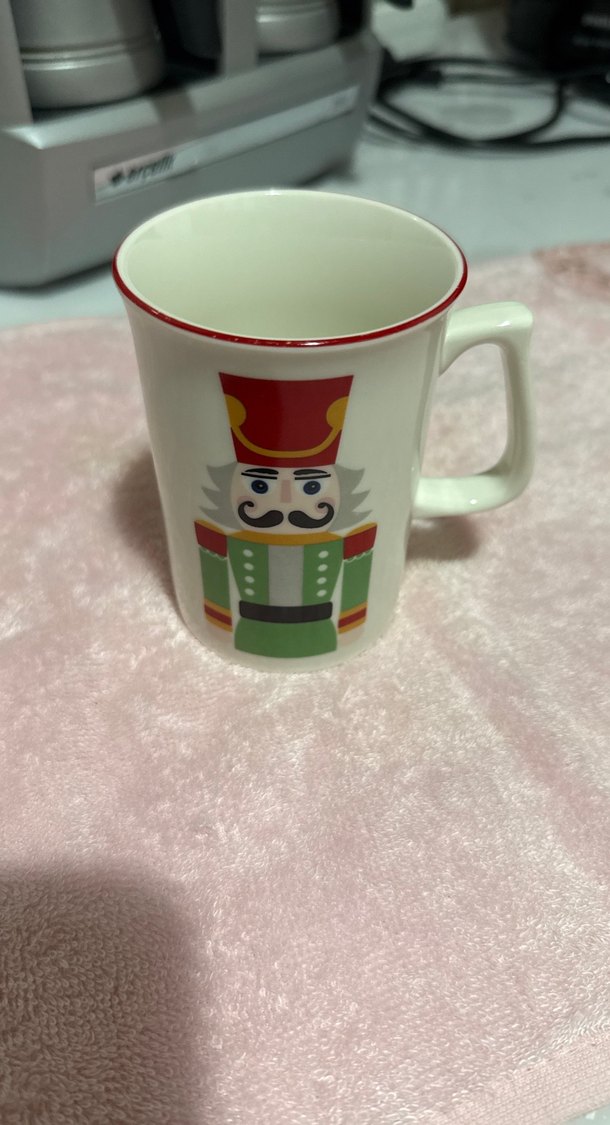 Bu beyaz seramik kupa, kırmızı kenarlıklı ve renkli kurşun asker figürlü tasarıma sahiptir. ☕
