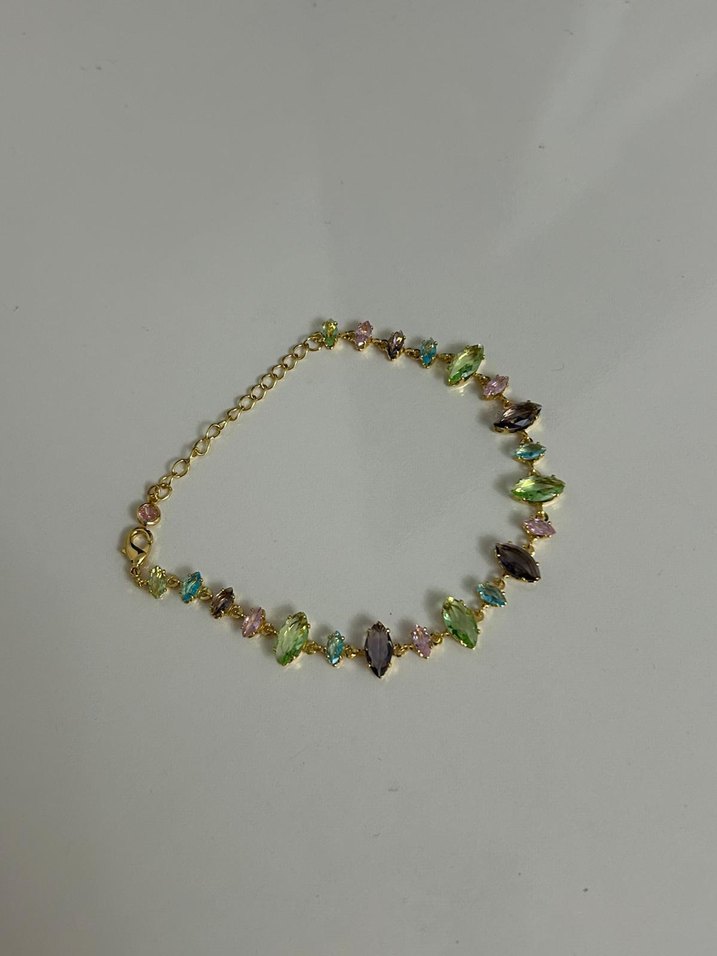 Renkli boncuklardan oluşan, hafif renkli ve bohem tarzda kadın bileklik. Tie-dye deseni ile retro havası katıyor. Romantik akşamlar için uygun.
