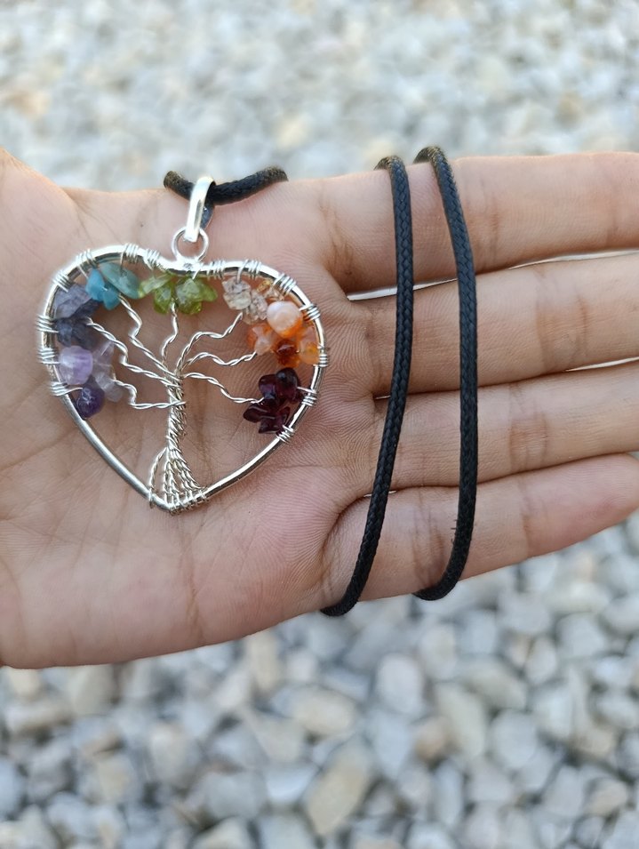 Bu bohem tarzı kolye, çok renkli boncuklu taşlardan yapılmış hayat ağacı kolyesi ve koyu renk kordon ile günlük kullanıma uygundur. Taşları orijinal olup başka kolyeler ile de kullanılabilir.