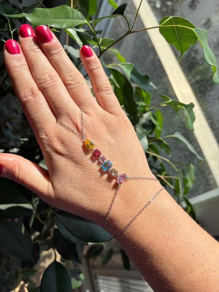 Çelik rengarenk taşlarla dizili silver renginde zarif Şahmeran