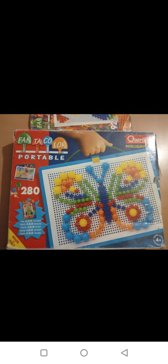 280 renkli parçadan oluşan, taşlarla çeşitli desenler yapmaya uygun taşlı eğitim oyuncağıdır. Taşınabilir bir pano ve desen albümü içerir. El-göz koordinasyonlarını, yaratıcı düşünme, el becerilerini, zeka gelişimlerini ve hayal güçlerinin gelişmesine yardımcı olmaktadır. Ailece keyifli vakit geçirmek için idealdir. Kullanıldı ama eksik parça yoktur. Kutu ve örnek kitapçıkta aşınmalar vardır. Ama asıl kullanılacak parçalar sorunsuzdur. Fantacolor Portable 280 parça 28 cm #fantacolor #portable #yaratıcı #kutuoyunu